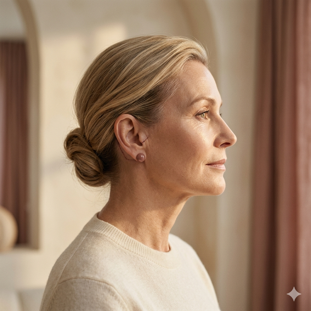 Under ett ansiktslyft på Stockholmskliniken görs diskreta snitt vid hårfästet och runt öronen, ibland med ett litet snitt under hakan. Det underliggande muskelnätverket (SMAS-lagret) lyfts och reponeras – inte enbart huden – vilket ger ett naturligt och hållbart resultat utan det 'dragna' utseende som äldre metoder gav. Överskottshud avlägsnas och snittet sluts med fina suturer. Operationen utförs i lokalbedövning med sedering och tar 3–5 timmar. Resultatet är en stramare, yngre ansiktskontour med bevarade naturliga ansiktsdrag.